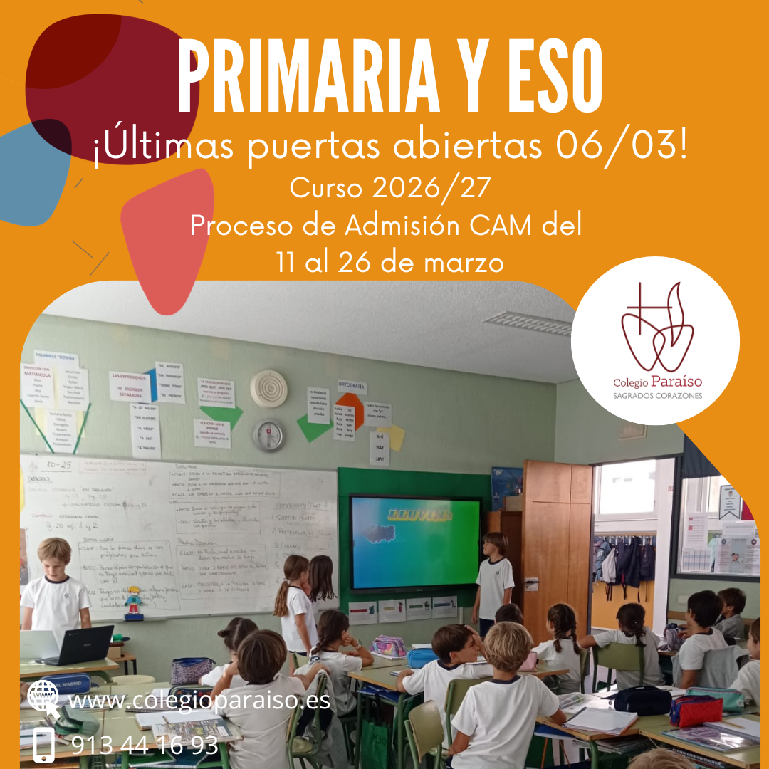 El Colegio Paraíso es un centro promovido por la congregación de hermanas de los Sagrados Corazones con ideario católico. Se fundó hace más de 50 años, por lo que nos avala una gran experiencia educativa.